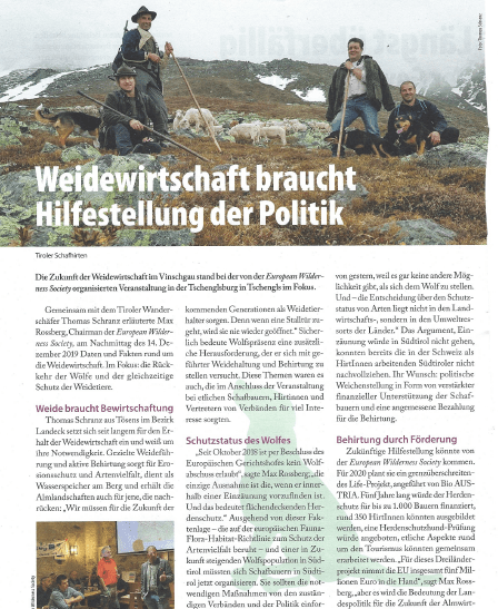 EURAC hielt im Wissenschaftsmuseum in Bozen einen Vortrag über die Touristenumfrage von 2018 und gab einen Ausblick auf die Maßnahmen von LIFEstockProtect, die darauf abzielen, die Koexistenz von Tourismus- und Herdenschutzmaßnahmen durch praktischer Tools wie Workshops und Exkursionen zu verbessern. Sie nahmen auch zusammen mit der European Wilderness Society an einem Treffen mit der Fachschule Salern teil, das im Rahmen der geplanten Herdenschutzschulungen die Entwicklung eines offiziellen Zertifizierungssystems für Hirten in Südtirol initiierte.